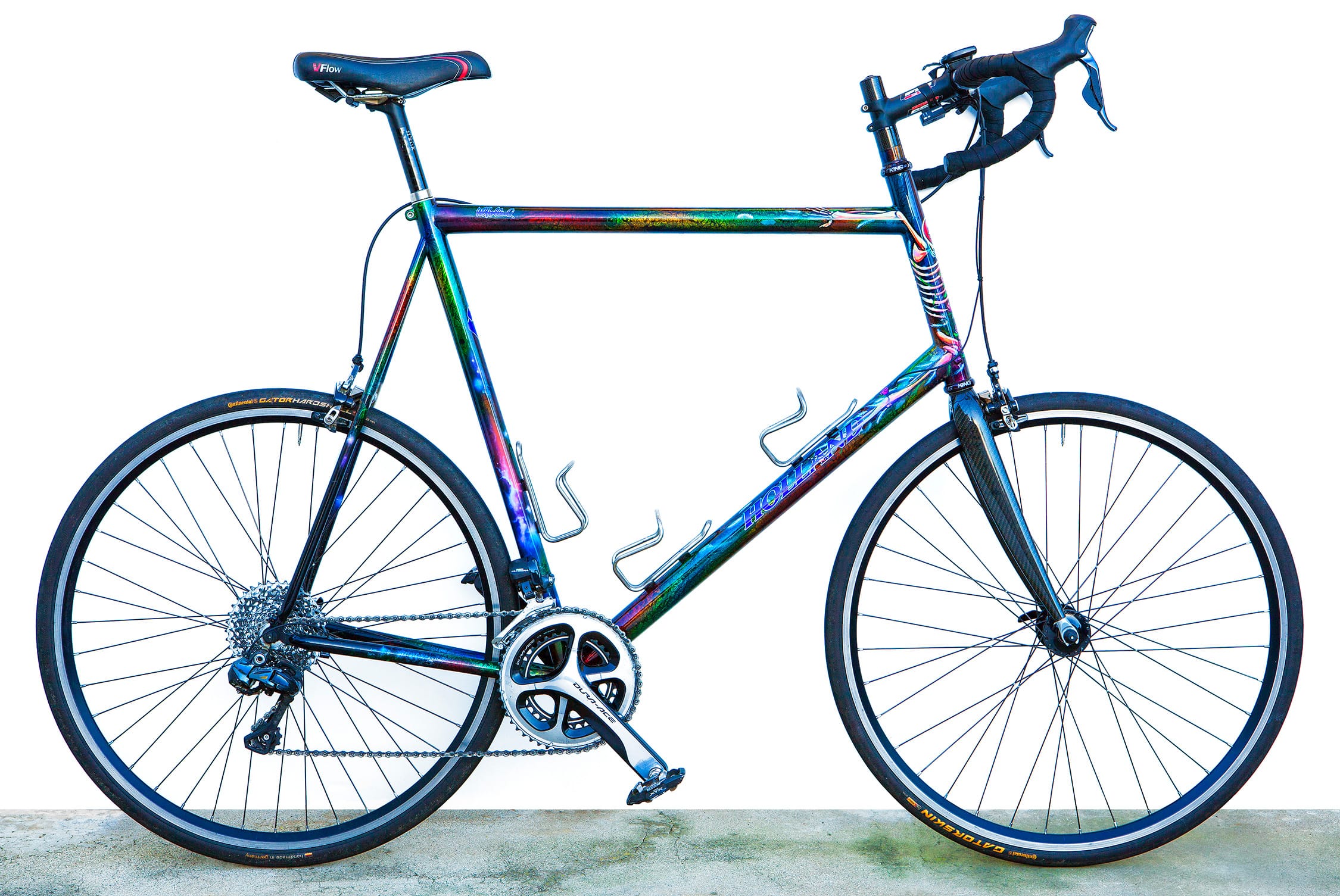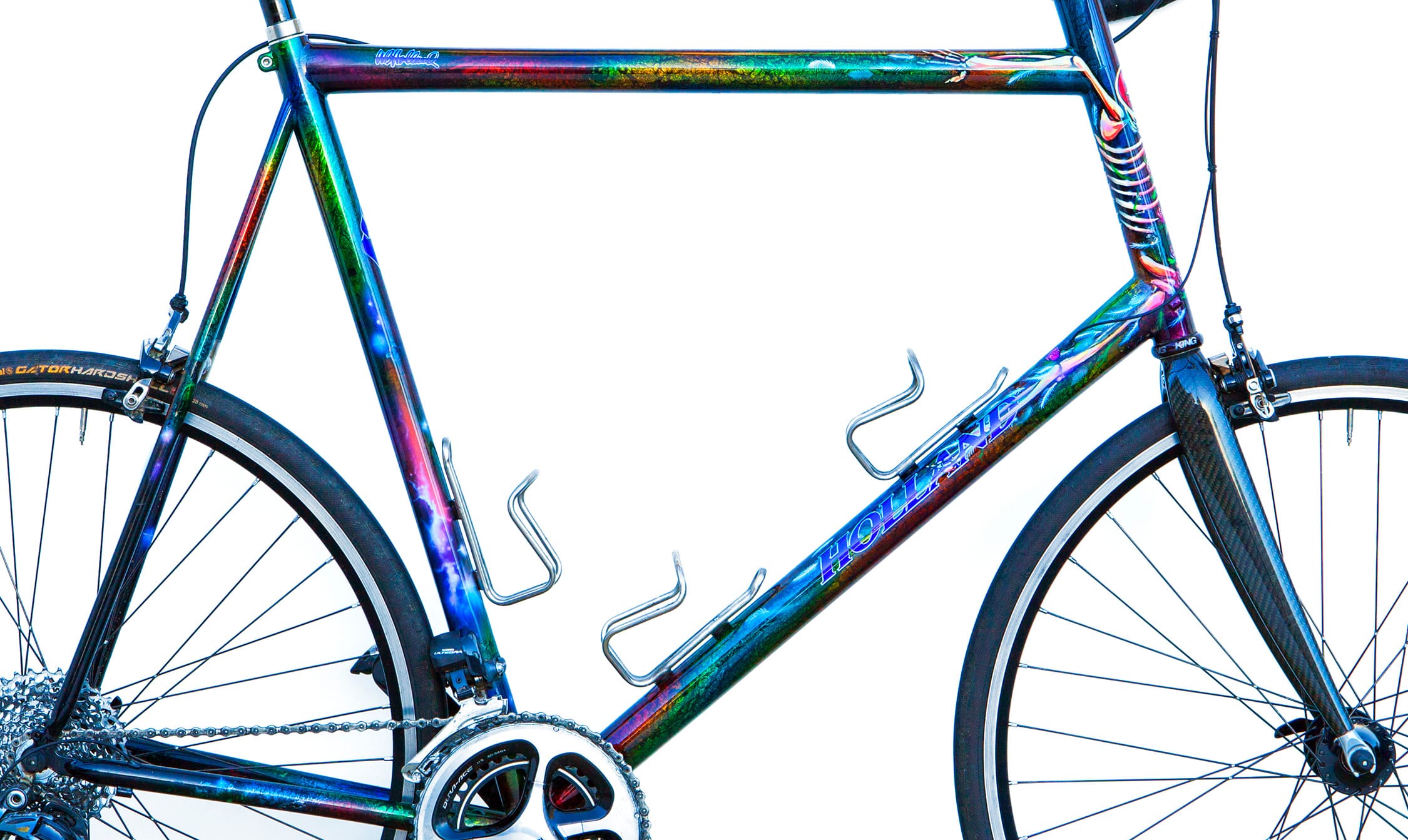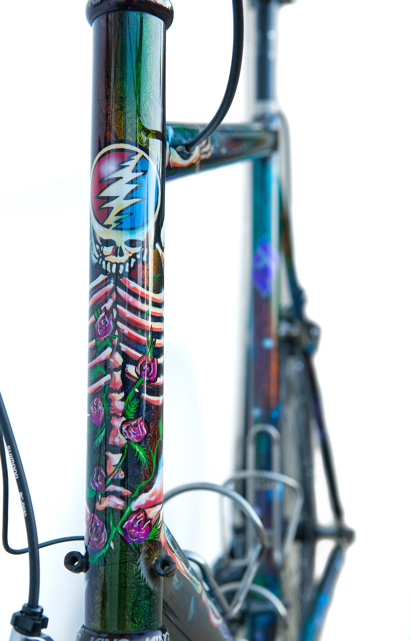 And in a world of the increasing demands of customers like me who live in the realm of “if I can think it, then Joe Bell can paint it”, he’s faced with the conundrum of instructions to “make it like the Sistine Chapel, depicting the history of the universe through the prism of Copernicus, Einstein and the Grateful Dead”…or “I want my bike to look like the Grand Canyon”…And then the task of “transposing the vast spectrum and ever-changing color schemes of Death Valley to my Bill Holland titanium and carbon fiber exo-grid”…